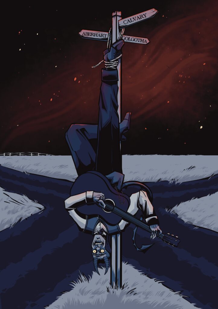 While the others healed and groomed themselves, Loss, the Unemployed Angel, went to the ruined local church in search of his former employer. Finding nothing, he shook his fist, muttered about the debts he was still owed, and then began searching the place. He uncovered a diary containing the tragic story of the ruined church.